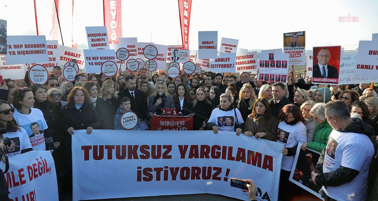 İmamoğlu’nun eşi Dilek İmamoğlu da “Madem gerçeklerin ortaya çıkacağını söylüyorsunuz; o halde neden mahkemenin TRT’den canlı yayınlanmasına karşı çıkıyorsunuz? Gelin, her şey milletin gözü önünde olsun. 86 milyon gerçeği görsün” dedi. CHP’nin eski milletvekili, tutuklu Aykut Erdoğdu’nun eşi, avukat Tuba Torun Erdoğdu da davanın kovuşturma aşamasına geçmeden çöktüğünü belirtti. Torun, Şilili şair Pablo Neruda’nın “Oğulları Ölen Analara Türkü” isimli şiiriyle sözlerini tamamladı.