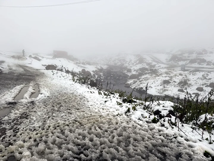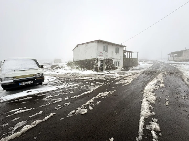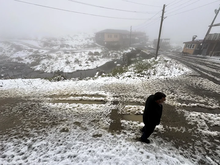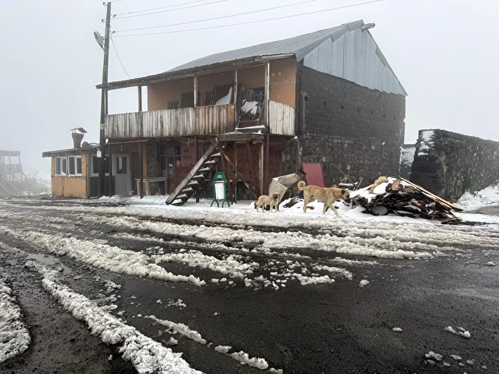 Yağışla Ardahan-Artvin arasındaki 2 bin 581 rakımlı Bülbülan Yaylası beyaza büründü.